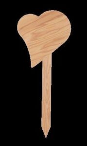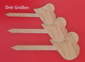Wir haben ein neues Grabkreuz: Holzsticker. Auf das Täfelchen wird der Name des Verstorbenen aufgeploddert.