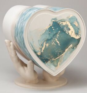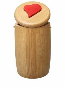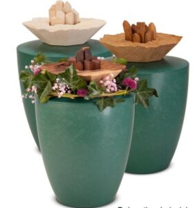 Biologisch abbaubare und umweltverträgliche Urnen aus Flüssigholz auf Wunsch mit passendem Gedenkstein.